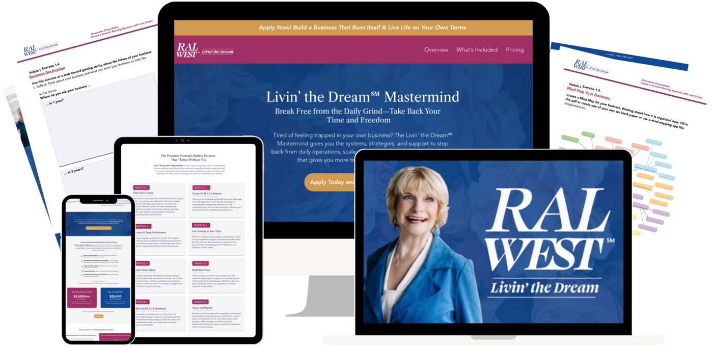Here’s the truth: real success isn’t about working harder. It’s about building a company that works beyond you. That’s what the Livin’ the Dream℠ Mastermind is designed to help you achieve.
